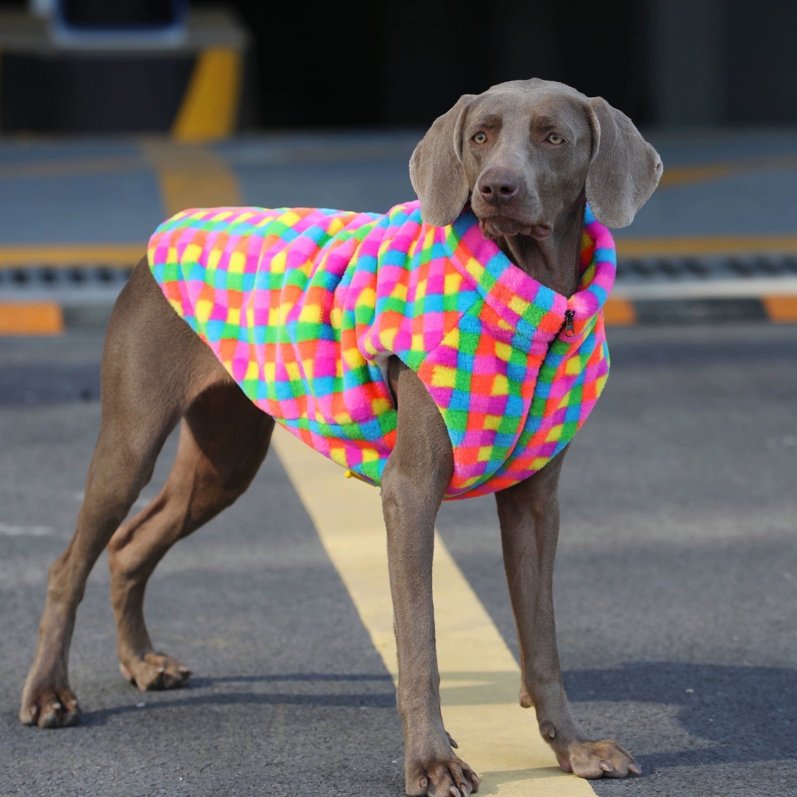 Add a pop of color and style to your dog's wardrobe with this vibrant Rainbow Plaid Vest, specially designed for large dog breeds. The classic plaid pattern in a rainbow of colors is sure to make your dog the center of attention on every walk.